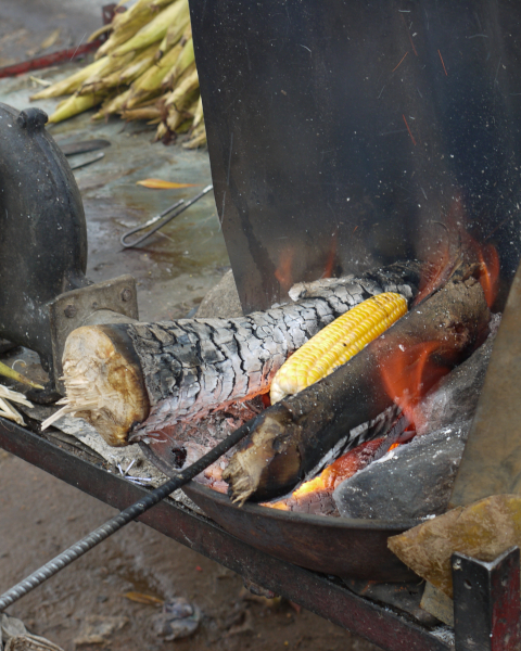 ※写真はインドの屋台、焼きトウモロコシ。