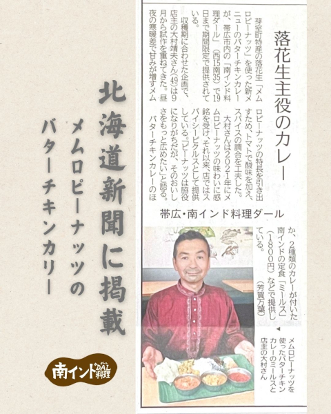 北海道新聞に掲載【メムロピーナッツのバターチキンカリー】